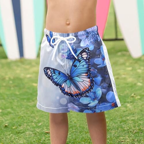 Pigsaly Boys Swim Trunks Flowers Blue Butterfly Boys Board Shorts Swimsuit Swimwear Summer Bathing Suit S 6