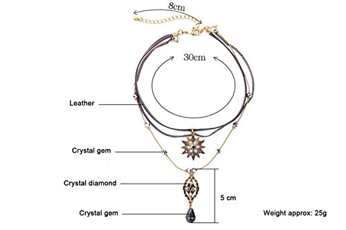 Item display length: 30 centimetersMaterial: MetalMetal type: ZincClasp type: LobsterChain type: 链条链Gem type: Cubic ZirconiaUNIQUE DESIGN: The one-of-a-kind Design Gives You the Ability to Add Noble Temperament Just the Way; This three-strand long layered necklace features a Rhinestone tassel chain design, provide you a elegant and cool look, very popular style, this three-strand necklace perfects the art of layering in one easy and effortless statement pieceGIFT: This is a great gift for your loved ones, girlfriend, fiancee, wife, mother, couple, Valentine or just a friend; Package include a gift boxOCCASION: This exquisite women jewelry gives you a totally fresh impression; The Statement necklace is suitable for you to attend special occasions, such as dinner party, birthday party and so on; The necklace could go with any outfit you choose; You will surely get tons of compliments on multiple occasionsMATERIAL: Alloy metal, PU leather, Crystal; robust alloy material, not easy to fade and deform