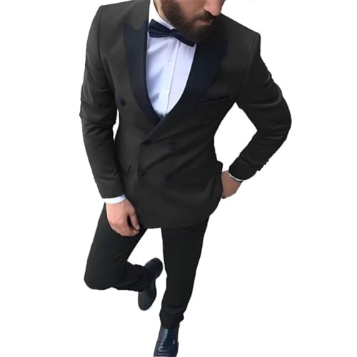 Men's Suit 2 Piece Double Breasted Slim Fit Wedding Formal Suits Tuxedo Prom Blazer Pants Set 2