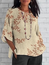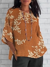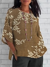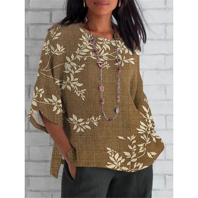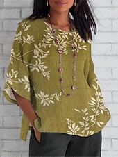Women's Shirt Floral Daily Casual 3/4 Length Sleeve Crew Neck Regular Tops Daily Holiday Print Yellow Light Green Brown Green Khaki Summer Spring Fall