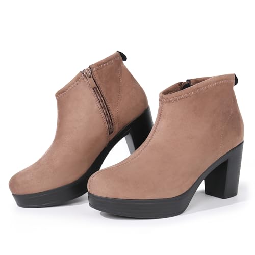 Hawkwell Women's Suede Arch Support Side Zipper Comfort Ankle Boot Chunky Block Heel Booties 6
