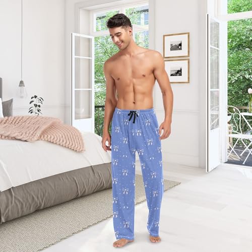 HOT ! Men's Blue Polka Dots and Bows Pajama Pants with Pockets - Straight Fit Cotton Sleep Bottoms for Lounge & Nightwear
