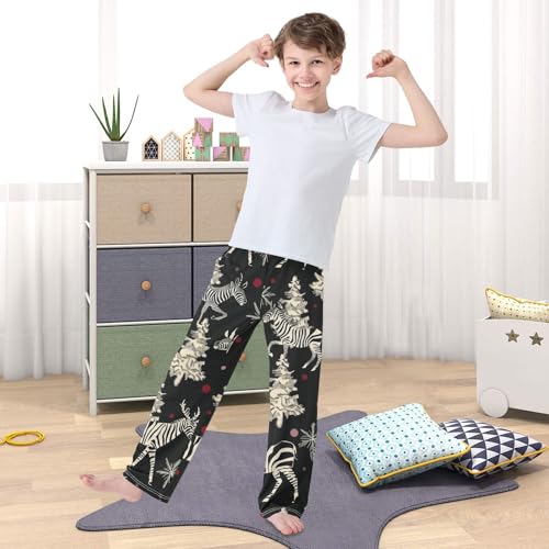 Zebra Xmas Tree Boys Long Pants Soft Trousers Elastic Waist Kids Lounge Bottoms with Pockets S-XL 4