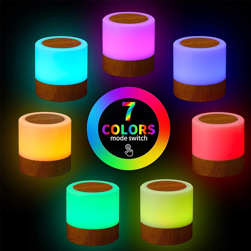 Night Light Touch Sensor Lamp Bedside Table Lamp for Kids Bedroom Rechargeable Dimmable Warm White Light + RGB Color Changing 7
