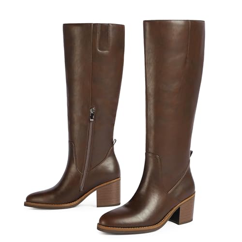 Sole material: RubberOuter material: Polyurethane (PU)Closure type: ZipClassic Knee-High Boots – Timeless long boots design that elevates your fall and winter wardrobe with a sleek, leg-lengthening silhouetteEasy Side-Zip Closure – Smooth zipper design allows for quick wear and removal while maintaining a secure fitAvailable in Multiple Colors – Offered in versatile shades like black, brown to complement your seasonal outfitsFeminine High Heel – Elegant Chunky heel-2.76 adds sophistication and height for dressy occasionsChic Rounded Toe–Rounded toe design creates a up-to-date, streamlined look for a fashion-forward edge