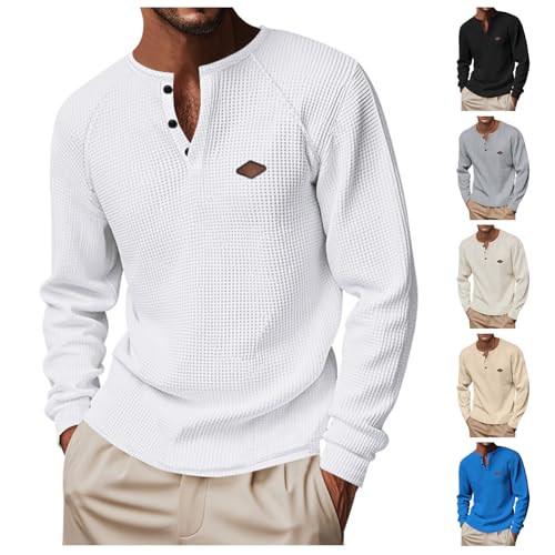 HOT ! Men's Textured Crew Neck Button Down Raglan Sleeve T-Shirt Lightweight Waffle Henley Long Sleeve Pullover
