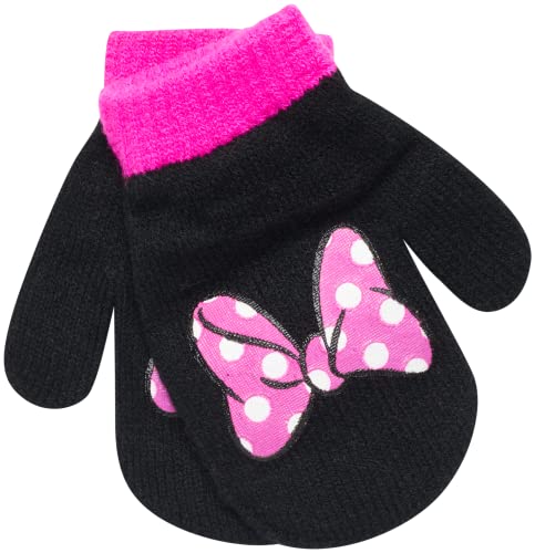 • CHARACTER DESIGN: 3-Piece toddler hat and mitten set includes hat and 2 pairs of mittens featuring Minnie Mouse by Disney in striking pink and black colors.