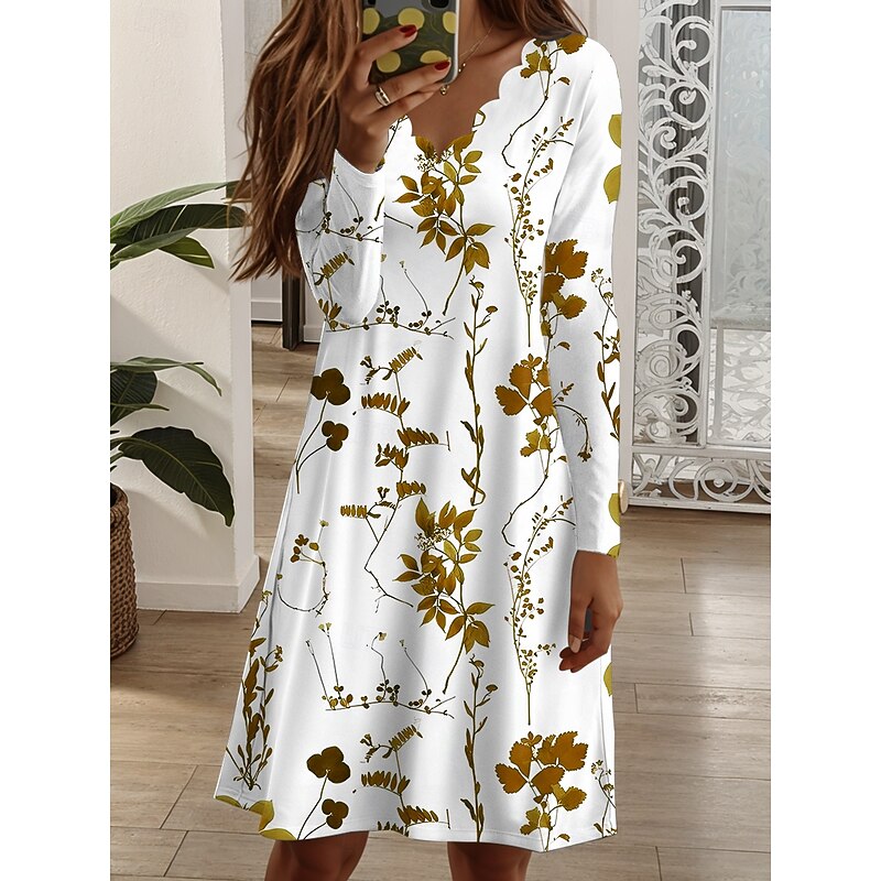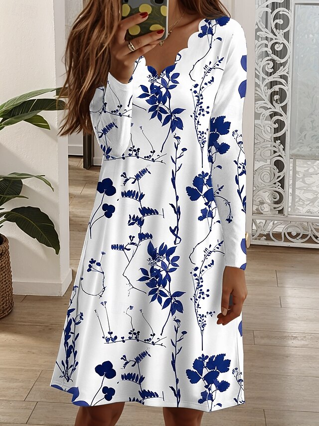 More information about Women's Mini Dress Shift Dress A Line Dress Casual Daily Regular Fit Floral Graphic Long Sleeve V Neck Yellow Red Blue Purple Spring Fall Winter