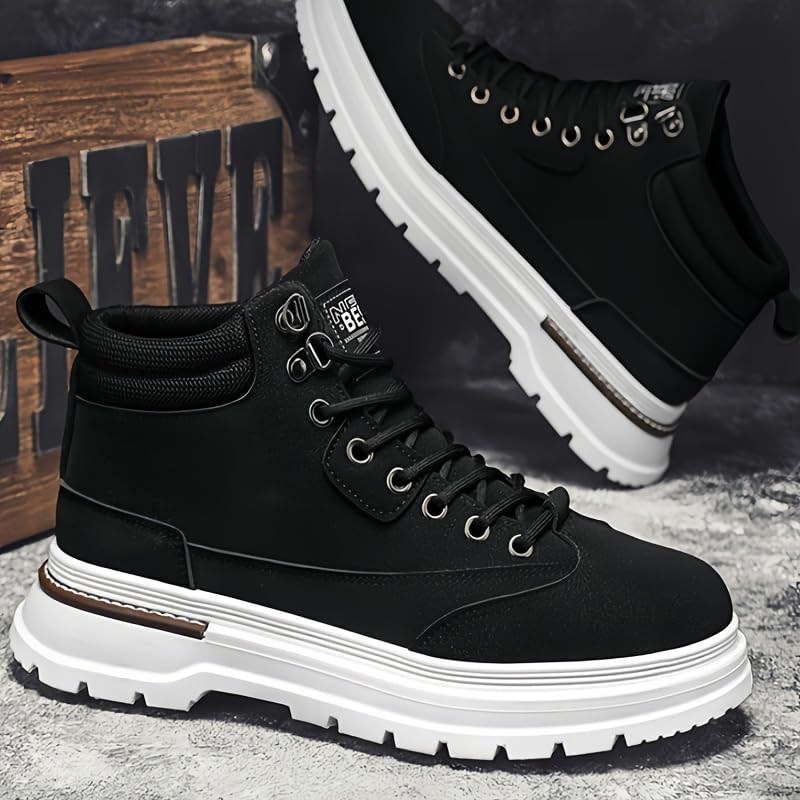 Hiking Boots Men - Round Toe Short Boot with Lace Closure, PVC Upper, Fabric Insole & Sole, Solid Color, Universal Fit for Outdoor & Daily Leisure Men's Stylish Sneakers 6