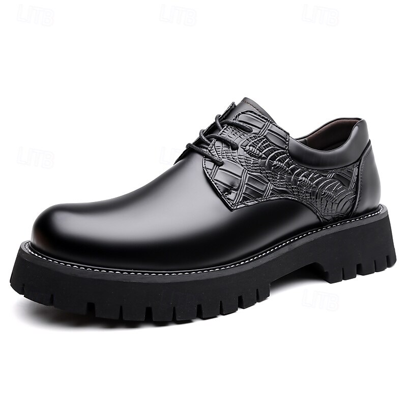 HOT ! Men's Black Formal Oxford Dress Shoes – Classic Lace-Up Business Shoes with Textured Detailing for Office, Weddings and Special Occasions