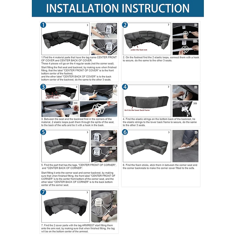 More information about L Shape Sectional Couch Cover Recliner Sofa Covers Burgundy Corner Sofa Stretch Reclining Slipcover Washable(4 Backrest Cover,4 Seat Cover,1 Coner Sofa Cover, 2 Armrest Cover)