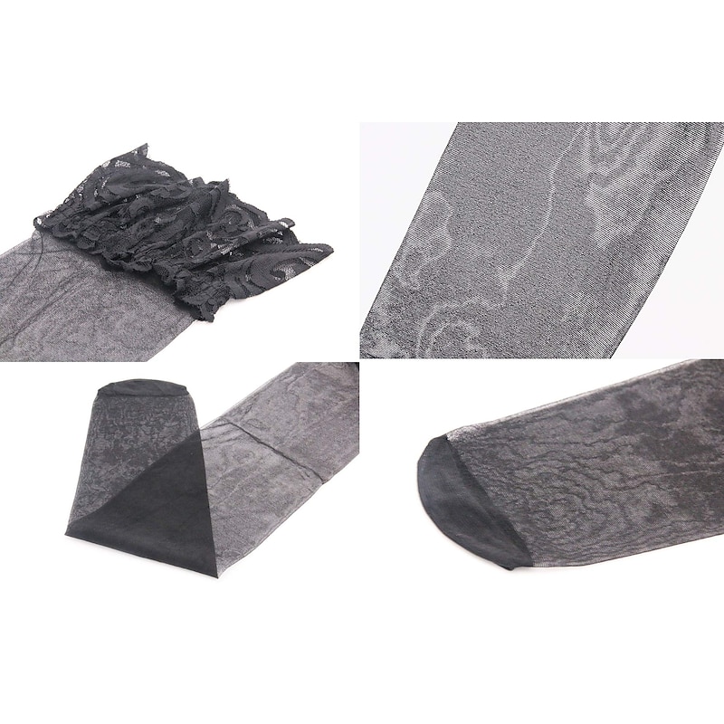 Highlights [Fabric] : Crafted from a high-quality blend of nylon and spandex, these thigh-high stockings offer a sleek appearance and a comfortable fit. The fabric is thin and breathable, making it suitable for wear throughout all seasons, while the micro-elasticity ensures a snug yet comfortable experience. [Design Highlights] : These stockings feature a sheer, elegant look with a delicate floral-patterned lace band at the top, adding a touch of femininity and charm to the overall design. The solid color options provide versatility and a timeless appeal. [Occasions] : Perfectly suited for party evenings, weddings, and daily wear, these stylish stockings can seamlessly transition from casual to formal events. They pair effortlessly with skirts, dresses, or lingerie, making them a versatile addition to any outfit. [Versatile Style] : Combining sexy and fashionable elements, these stockings are designed to enhance both casual and dressed-up ensembles. Their chic design complements a wide variety of wardrobe choices. [Size Details] : Available in a convenient one-size design, these stockings are tailored to fit a wide range of body types comfortably, providing a flattering look for different occasions.