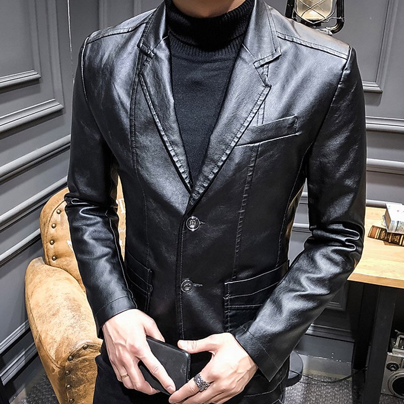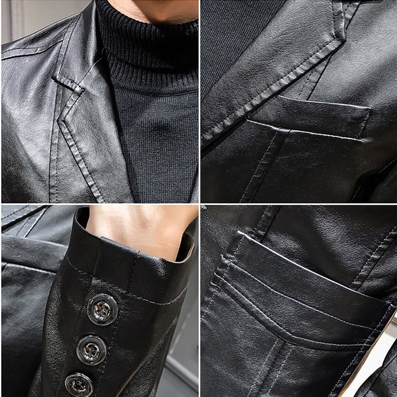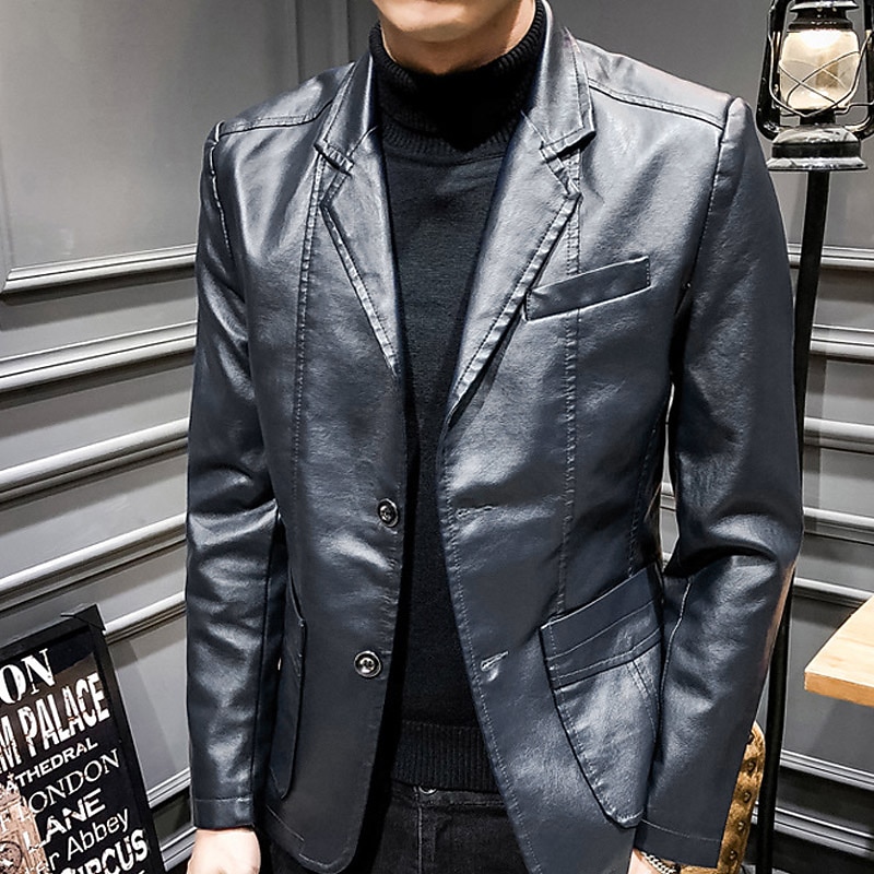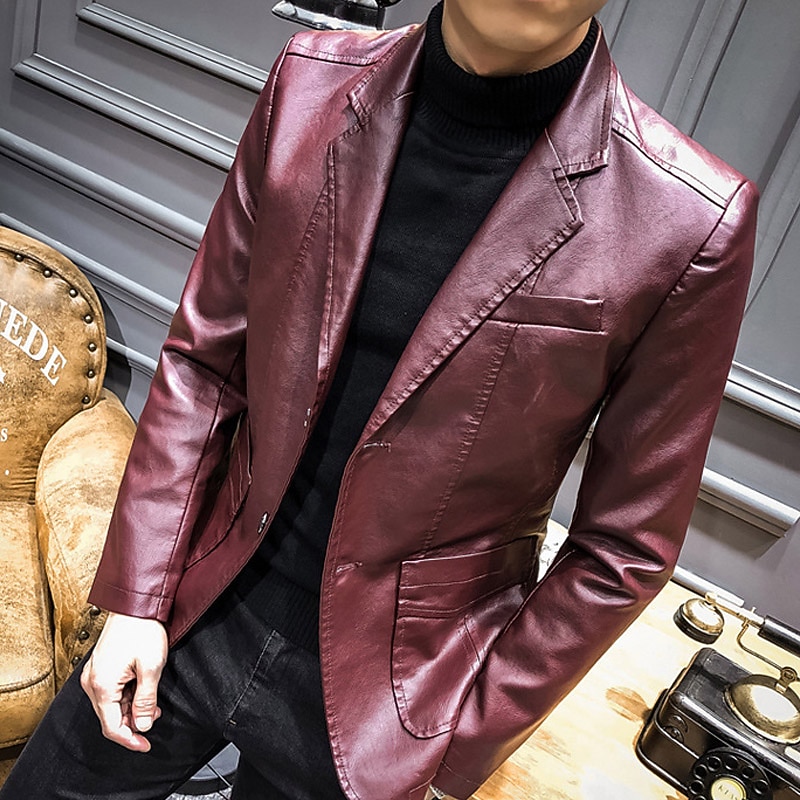 $52.99 - Men's Faux Leather Jacket Blazer Office & Career Daily Wear Warm Pocket Button-Down Spring & Fall Solid / Plain Color Stylish Warm Ups Turndown Faux Leather Wine Black khaki Dark Blue Jacket 2025. Shop for cheap Men's Classic Blazers online? Buy at lightinthebox.com on sale today!