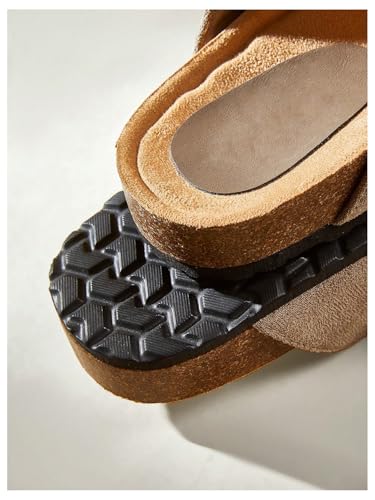 MakeMeChic Women's Suede Round Toe Flat Shoes Faux Leather Slip On Platform Mules 5
