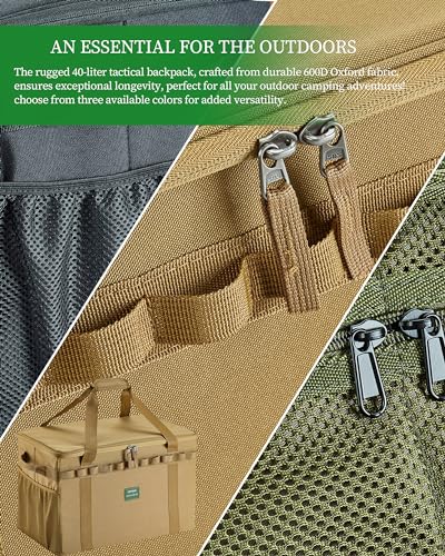 Large Capacity Design: The Tactical Large Camping Storage Bag offers a spacious 40L capacity, easily accommodating a variety of camping and cooking equipment, making it perfect for all your outdoor storage needs.High-Quality Material: Made from 600D Oxford fabric, this bag is exceptionally solid and can withstand harsh outdoor environments and frequent use, ensuring long-term reliability.Waterproof Bottom: Featuring a waterproof bottom specifically designed for outdoor use, this bag effectively prevents moisture penetration, keeping your belongings dry, especially in wet conditions.Adjustable Dividers: Equipped with two adjustable dividers, users can freely organize the storage space according to their needs, making it easier to categorize and store different items efficiently.Ideal for Long Trips: This versatile duffle bag is designed for easy transport, making it ideal for long trips and extended journeys. Whether you're on a road trip, hiking, or camping, it provides a reliable storage solution for your travels. Perfect for everyday use. excellent materials and excellent craftsmanship ensure long-lasting durability.