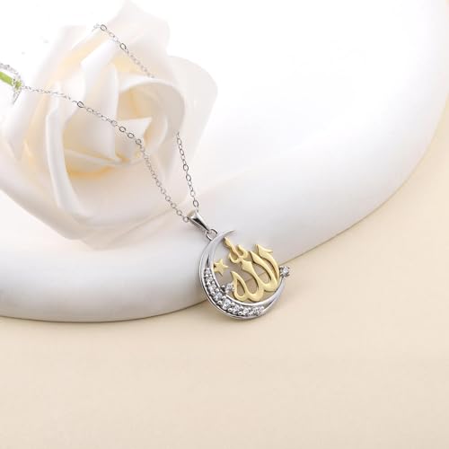 HOT ! Allah Islamic Necklace for Women - 925 Sterling Silver Islamic Muslim Religious Faith Pendant Necklace Arabic Moon Jewelry Eid Ramadan Gifts