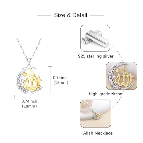 Allah Islamic Necklace for Women - 925 Sterling Silver Islamic Muslim Religious Faith Pendant Necklace Arabic Moon Jewelry Eid Ramadan Gifts 3