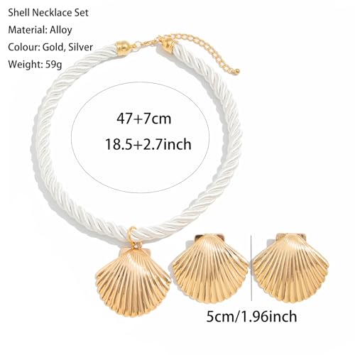 Shell Necklaces for Women Gold Seashell Earrings Set Big Seashell Jewelry Summer Beachy Necklace Beach Jewelry 4