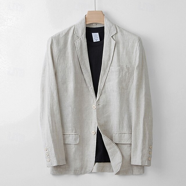 Men's 100% Linen Blazer Blazer Business Cocktail Party Wedding Party Fashion Casual Spring Autumn / Fall 100% Linen Solid Color Pocket Buttons Comfortable Single Breasted Blazer Navy Blue khaki Gray 11