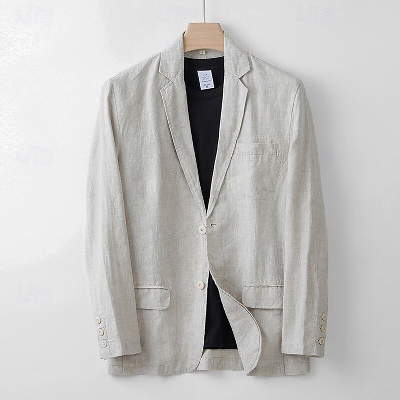 Men's 100% Linen Blazer Blazer Business Cocktail Party Wedding Party Fashion Casual Spring Autumn / Fall 100% Linen Solid Color Pocket Buttons Comfortable Single Breasted Blazer Navy Blue khaki Gray 7