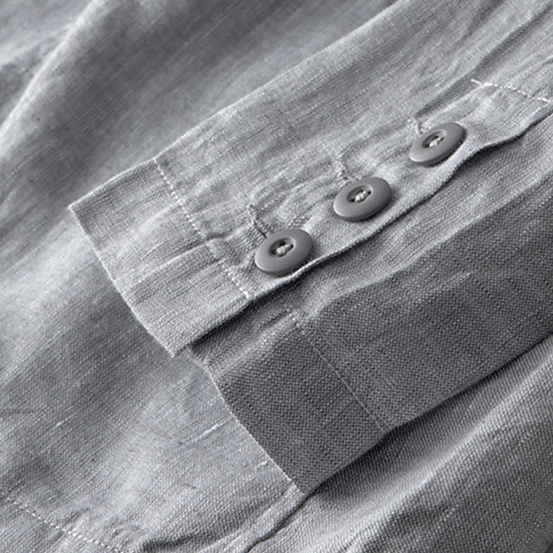 Men's 100% Linen Blazer Blazer Business Cocktail Party Wedding Party Fashion Casual Spring Autumn / Fall 100% Linen Solid Color Pocket Buttons Comfortable Single Breasted Blazer Navy Blue khaki Gray 5