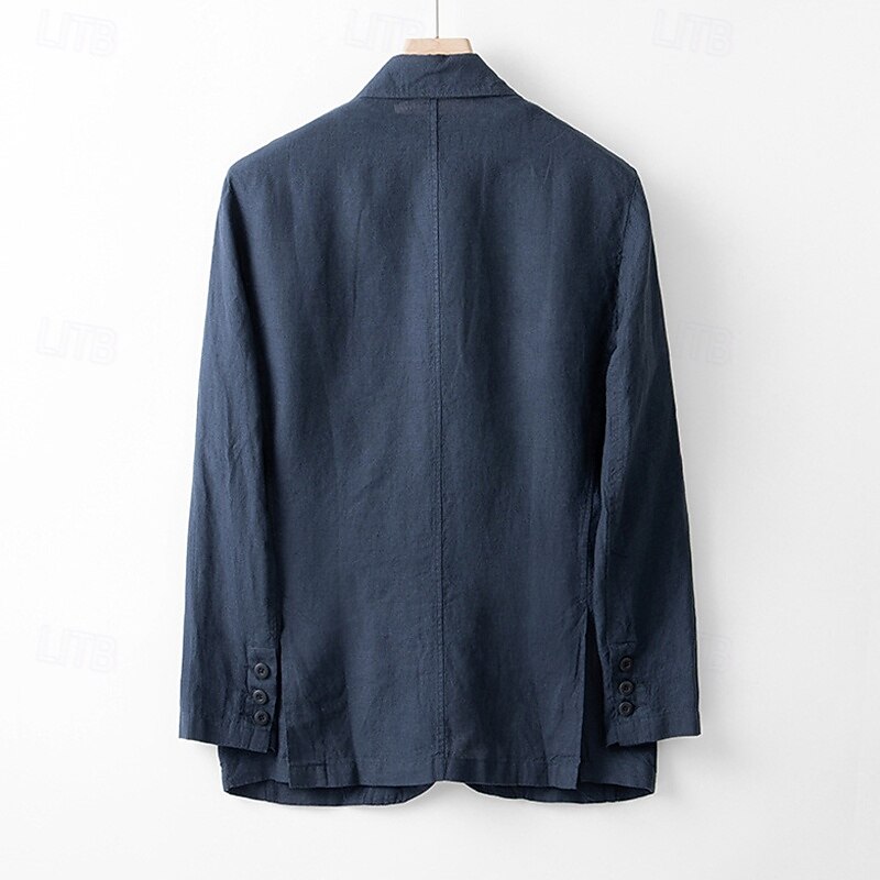 Men's 100% Linen Blazer Blazer Business Cocktail Party Wedding Party Fashion Casual Spring Autumn / Fall 100% Linen Solid Color Pocket Buttons Comfortable Single Breasted Blazer Navy Blue khaki Gray 6