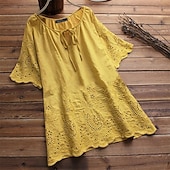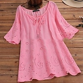 More information about Women's Shirt Linen-Inspired Shirts Blouse Plain Fashion Round Neck Street Daily Lace up Lace White Yellow Pink Green Summer