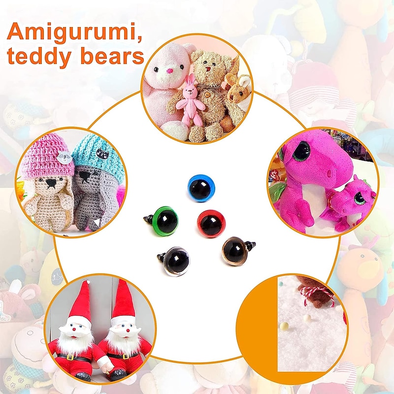 390pcs Plastic Safety Eyes and Noses, Includes Colorful Safety Eyes and Safety Nose with  Washers, Multiple Sizes for Doll, Plush Animal and Teddy Bear Craft Making 11