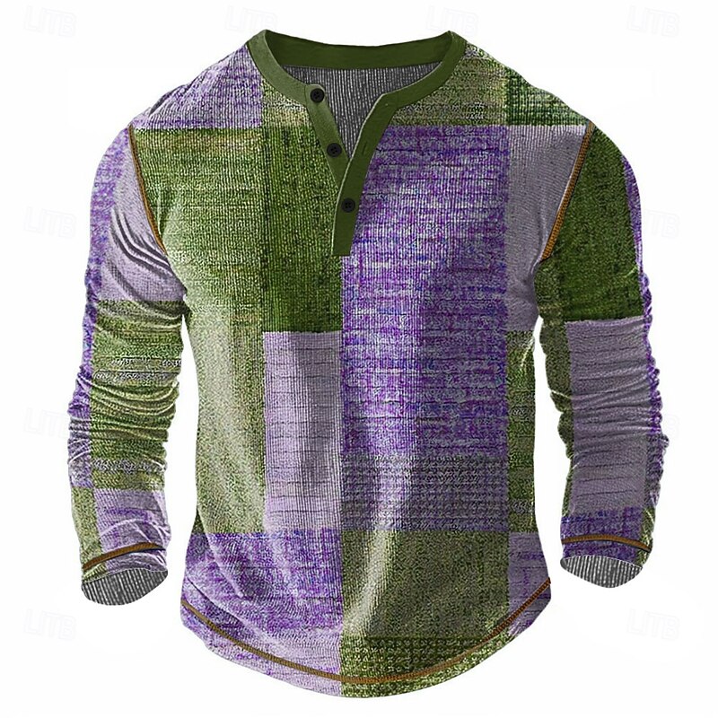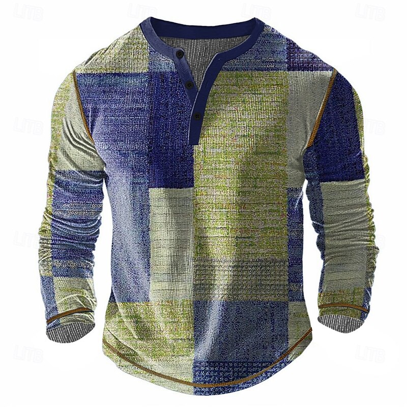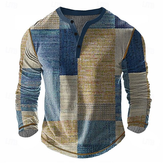 More information about Men's Patchwork Henley Shirt Waffle T Shirt Long Sleeve Vintage Daily Retro Vintage Sports Outdoor Casual Holiday Spring & Summer All Seasons Dark Brown Navy Blue Green Henley Henley T-Shirt