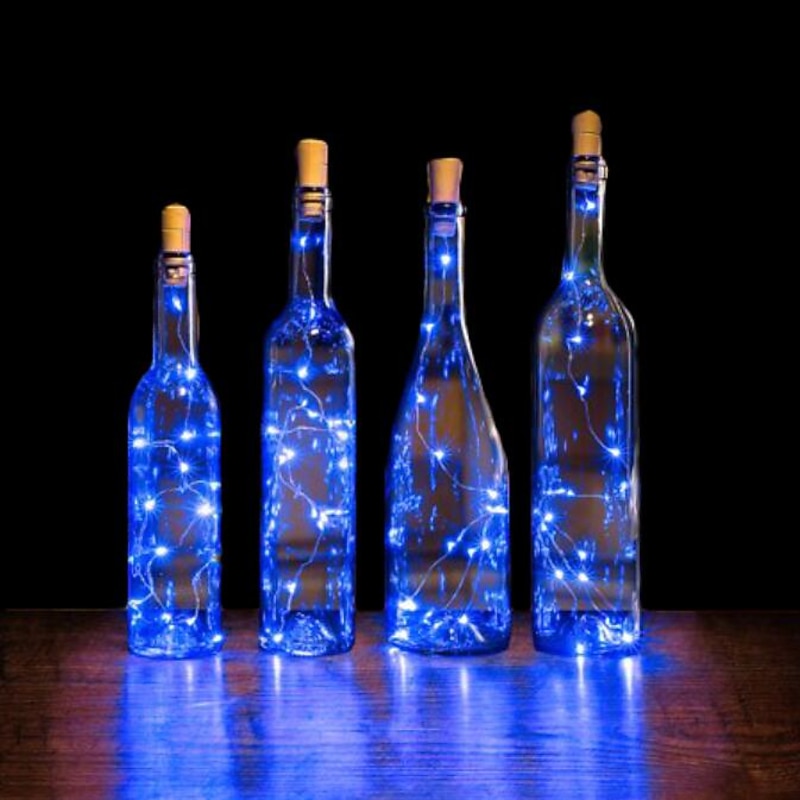 Elegant Wedding Reception Party 1/2/6/10pcs Wine Bottle String Lights 2m 20LEDs with Cork Warm White White Multi Color Red Blue Waterproof Christmas Wedding Decoration Batteries Powered 25