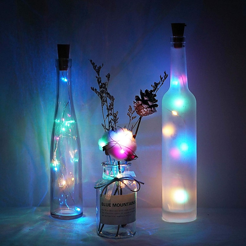 Elegant Wedding Reception Party 1/2/6/10pcs Wine Bottle String Lights 2m 20LEDs with Cork Warm White White Multi Color Red Blue Waterproof Christmas Wedding Decoration Batteries Powered 23