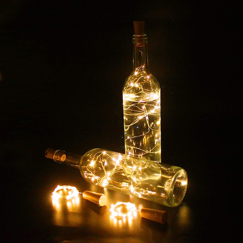 Elegant Wedding Reception Party 1/2/6/10pcs Wine Bottle String Lights 2m 20LEDs with Cork Warm White White Multi Color Red Blue Waterproof Christmas Wedding Decoration Batteries Powered 1