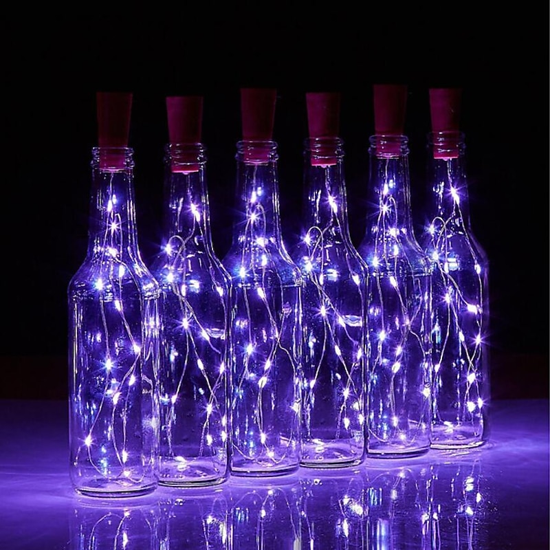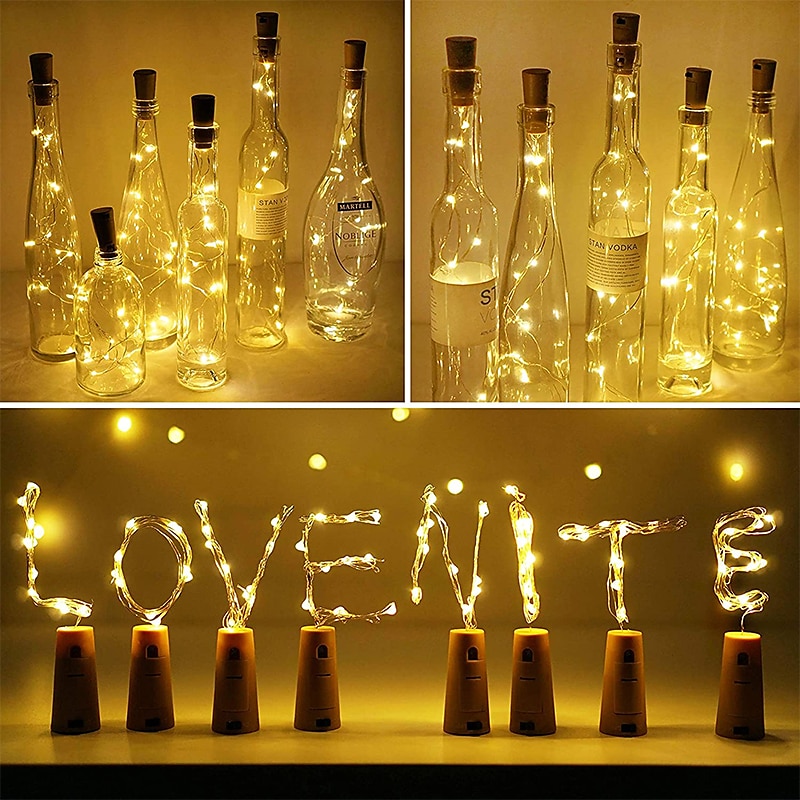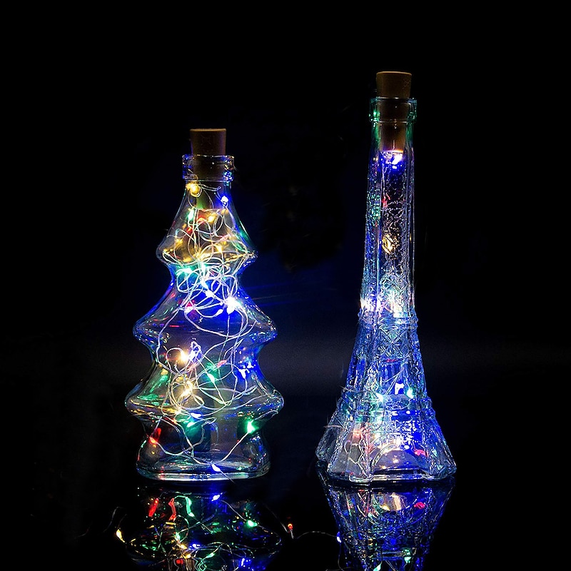 Elegant Wedding Reception Party 1/2/6/10pcs Wine Bottle String Lights 2m 20LEDs with Cork Warm White White Multi Color Red Blue Waterproof Christmas Wedding Decoration Batteries Powered 42
