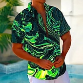 More information about Men's Abstract Marble Shirt Button Up Shirt Short Sleeve Fashion Casual Vacation Streetwear Beach Wear Summer Fall Turndown 3D Print Collared Shirts Front One Pocket Green
