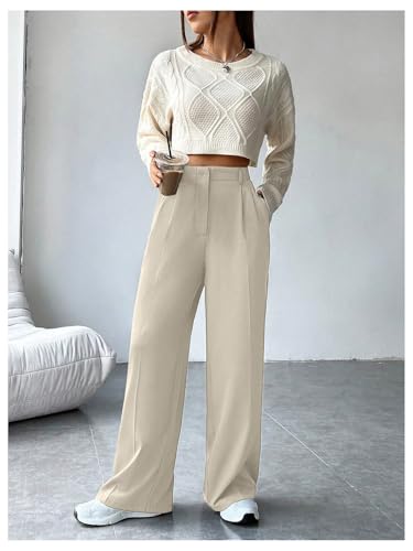 HOT ! Floerns Women's High Waisted Wide Leg Pants Office Dress Trousers with Pockets