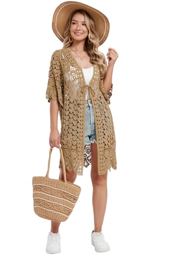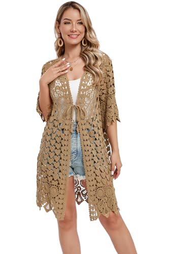 More information about Women's Hollow Out Lace Kimono Short Sleeve Crochet Cardigan Cover up