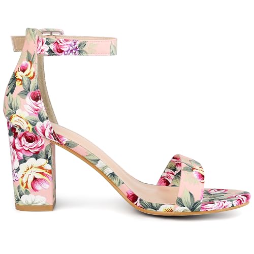 Allegra K Women's Floral Print Open Toe Block High Heels Summer Sandals 5