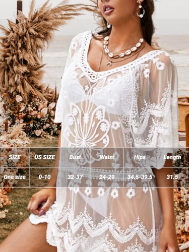Fabric type: Sheer Mesh / Floral LaceCare instructions: Machine WashOrigin: Imported【Boho Dress】One Size Fits US 0-10 / Run Small【Feature】V Neck / Half Sleeve / Low Back【Detail】Hollow Out / Asymmetrical Hem【Don't Miss】Versatile - Dress it up for country concert outfits or just as a swimsuit cover up.【Occasion】Western Outfit / Music Festival / Beach Vacation