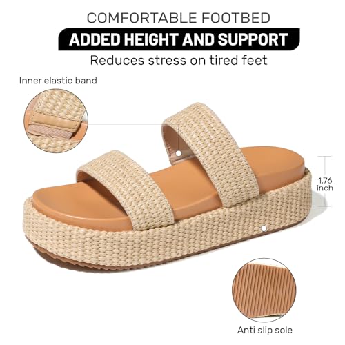 • Premium Materials: Crafted with a woven raffia and soft upper, along with a durable synthetic lining and outsole, these summer platform sandals provide a balance of breathability and longevity