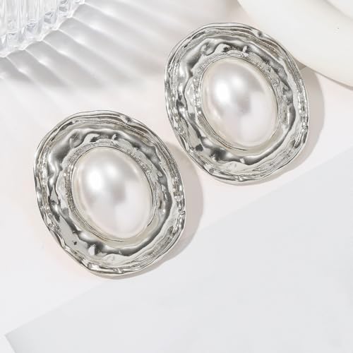 Vintage Pearl Earrings for Women Chunky Gold Geometric Oval Pearl Stud Earrings Exaggerated Textured Round Statement Earrings Trendy Jewelry Presents 5