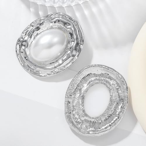 Vintage Pearl Earrings for Women Chunky Gold Geometric Oval Pearl Stud Earrings Exaggerated Textured Round Statement Earrings Trendy Jewelry Presents 4