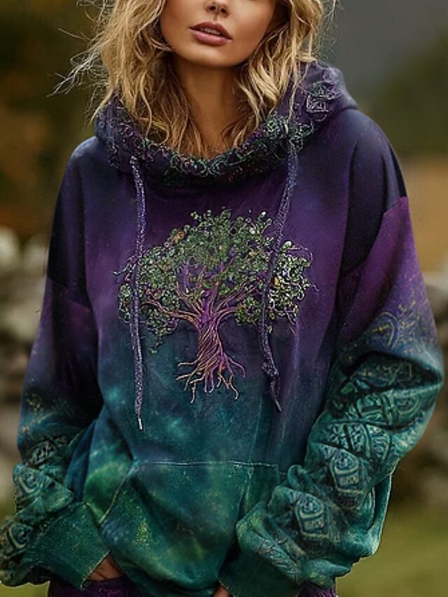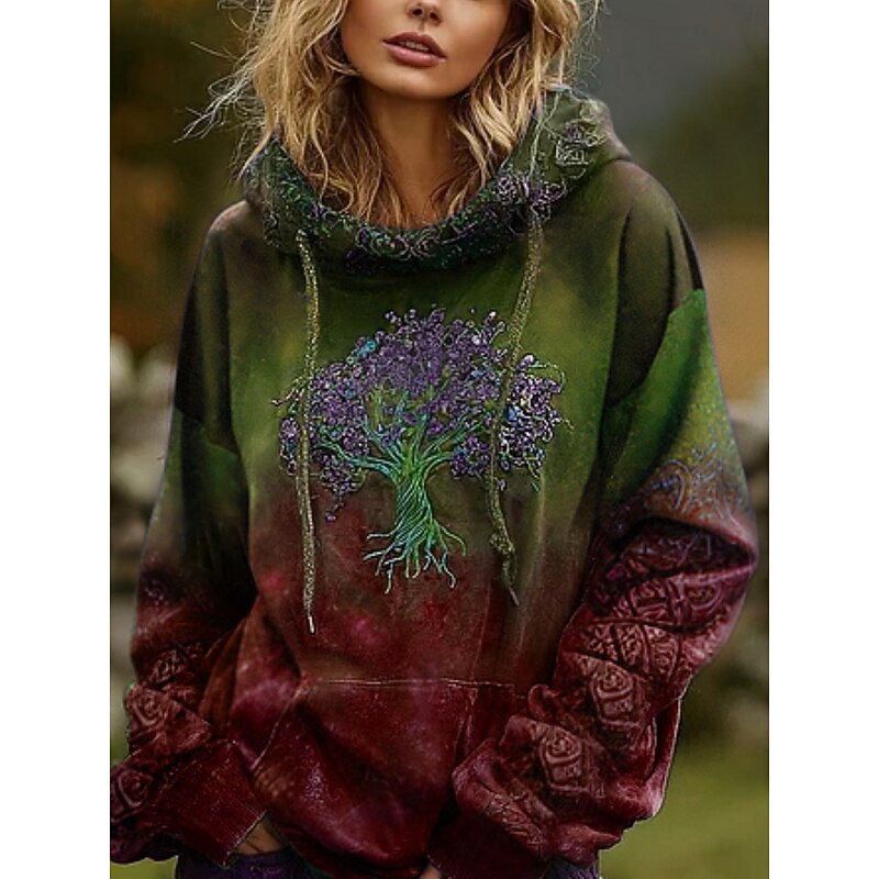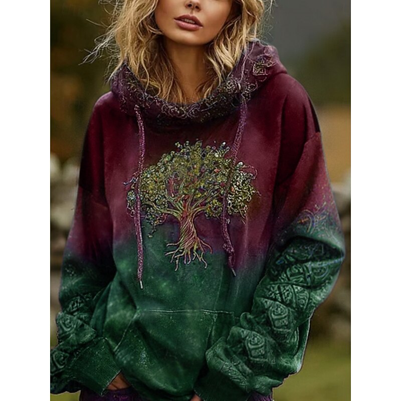 More information about Women's Hoodies Graphic Vintage Daily Casual Long Sleeve V Neck Regular Tops Tribal Tree Of Life Vintage Designer Vacation Street Going out Daily Holiday Print Wine Red Dark Green Fall Winter