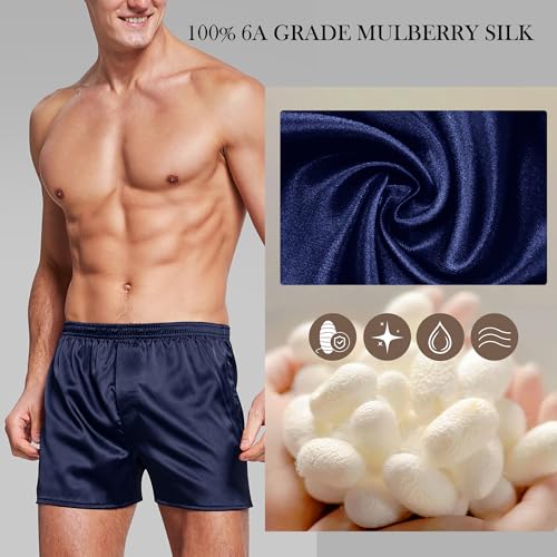 SIIK 100% Mulberry Silk Pajama Shorts for Men - Sleep Shorts, Pj Bottoms, Lounge Shorts, Boxer Shorts, Dark Blue 5