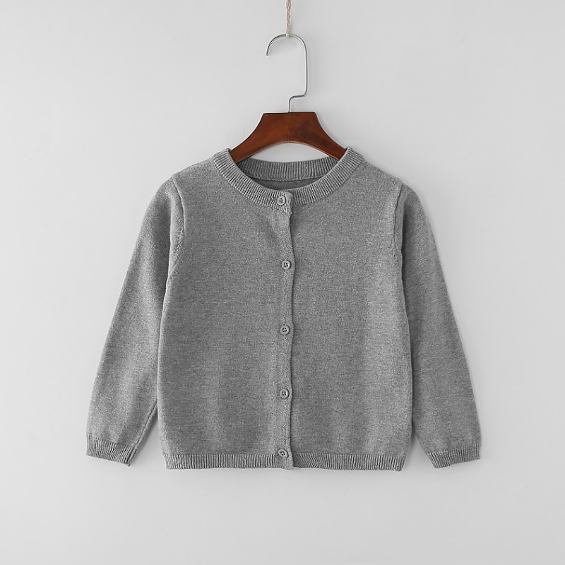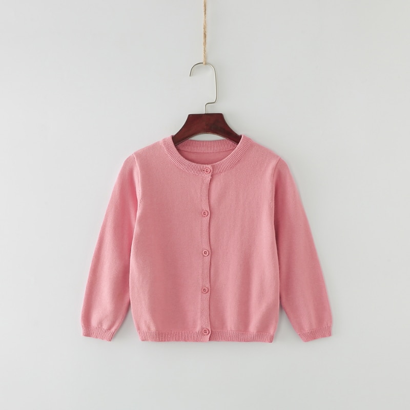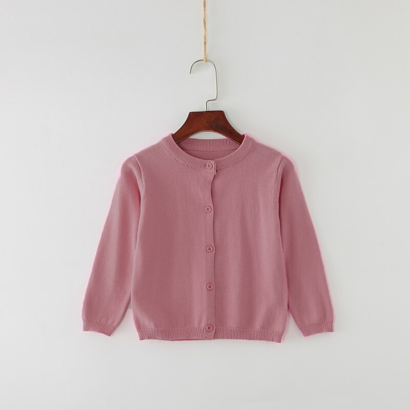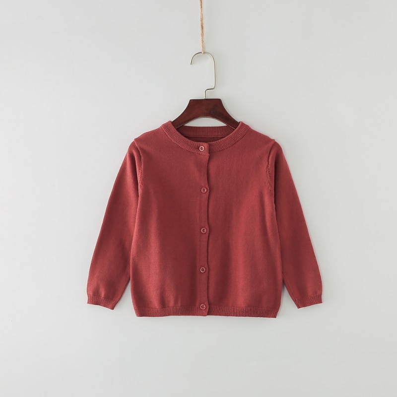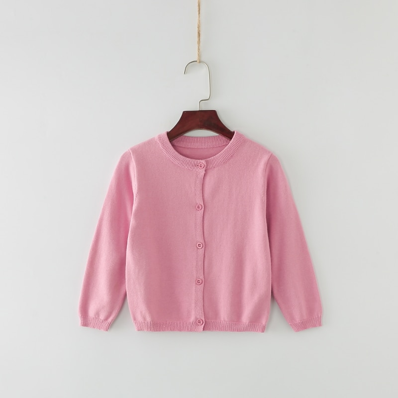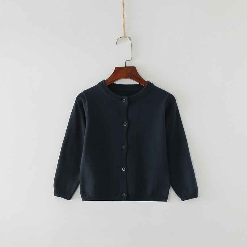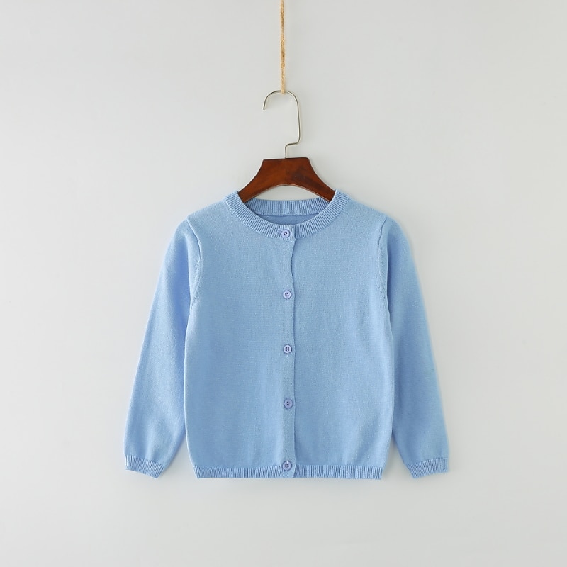 HOT ! Kids Girls' Cardigan Solid Color School Long Sleeve Active Cotton 7-13 Years Spring Water Blue turmeric Dark powder