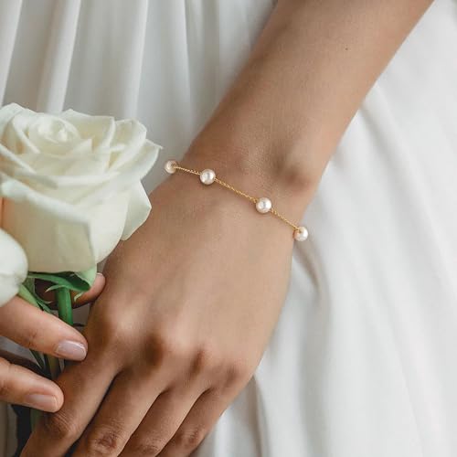 KAERUN Pearl Gold Bracelets for Women Trendy 14K Gold Plated Dainty Pearl Beaded Bracelet Adjustable Chain Bracelets Non Tarnish Bridesmaid Proposal Birthday Gifts for Women Jewelry 6