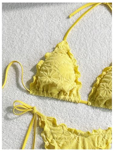 MakeMeChic Women's Polka Dots Bikini Sets Halter Tie Backless Frill Trim String Swimsuits 3