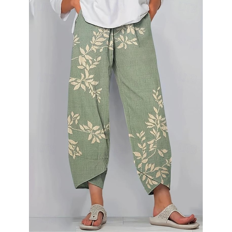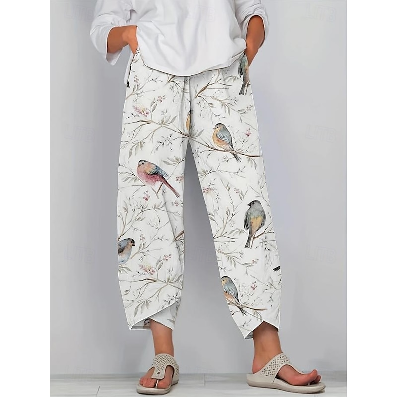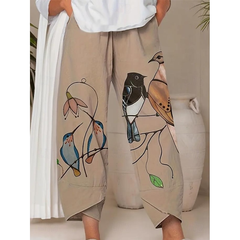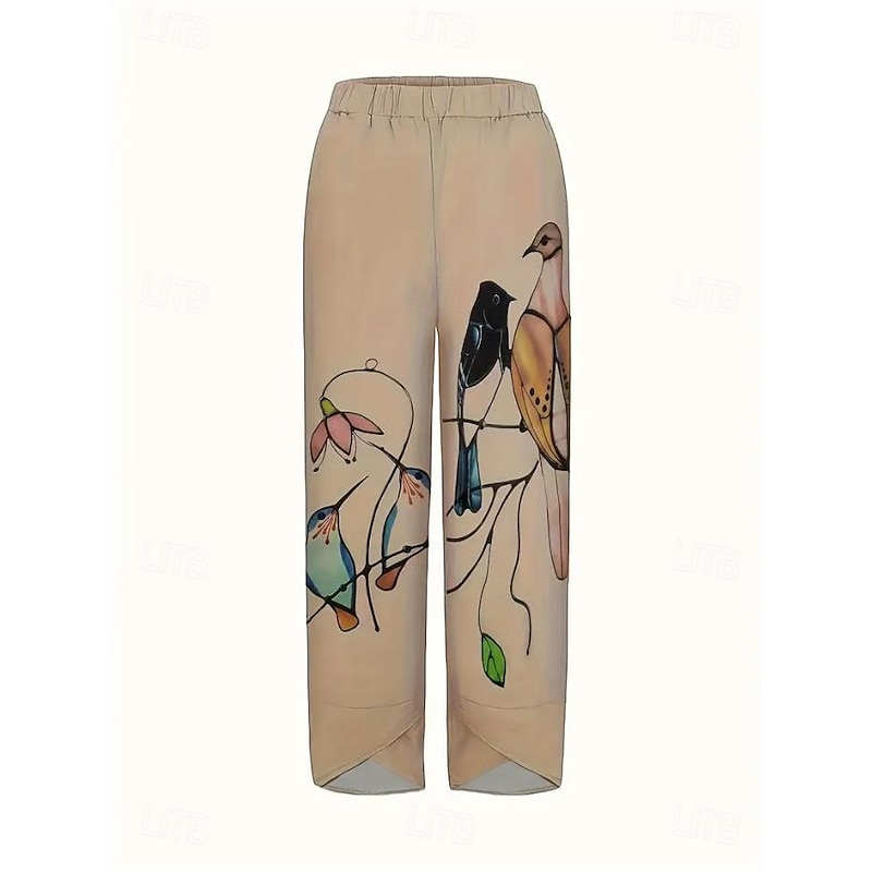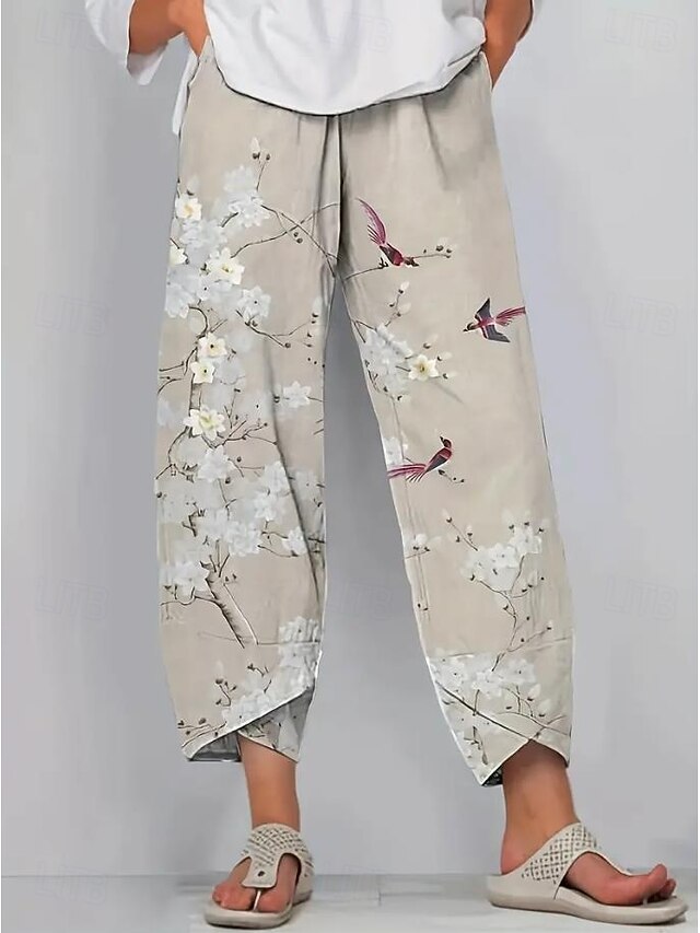 Women's Wide Leg Chinos Baggy Pants Vacation Basic Casual Ankle-Length High Waist Floral Graphic Bird Printing Thermal Warm Soft Breathable Micro-elastic Vacation Street Causal Black White Blue Green 19
