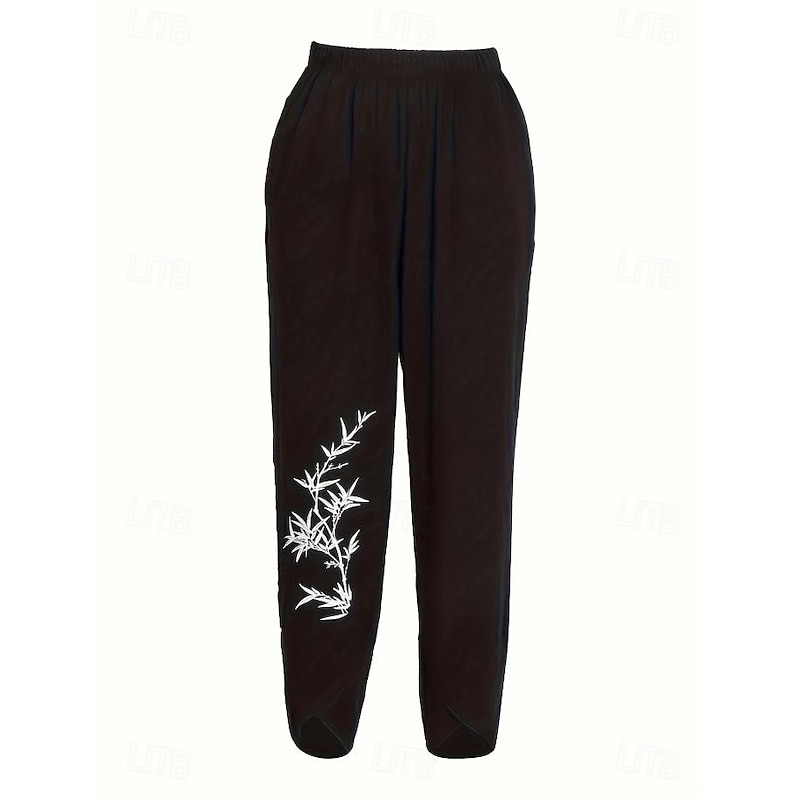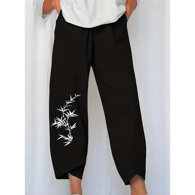 Women's Wide Leg Chinos Baggy Pants Vacation Basic Casual Ankle-Length High Waist Floral Graphic Bird Printing Thermal Warm Soft Breathable Micro-elastic Vacation Street Causal Black White Blue Green 13