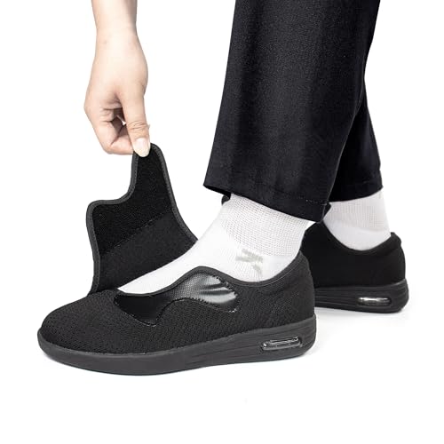 Women's Orthopedic Diabetic Walking Shoes – Wide Fit Sneakers with Air Cushion & Adjustable Straps for Swollen Feet Black 5