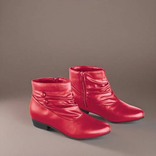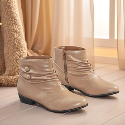 - chic and cozy low boots feature a scrunched design, side zipper, button detail accent, cushioned insole and skid-resistant soles